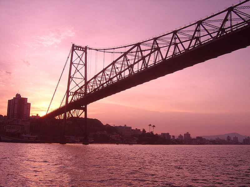 A imagem "cartão-postal" que a identifica é a famosa Ponte Hercílio Luz