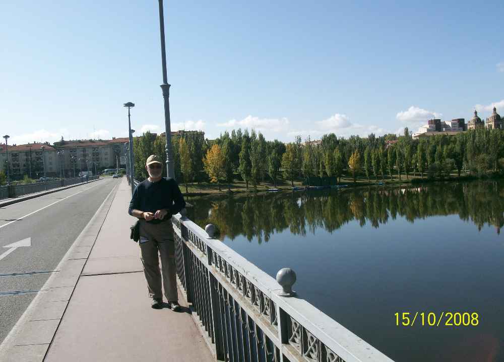| Cruzando a Puente Enrique Estevan, sobre o rio Tormes em Salamanca - Espanha. |