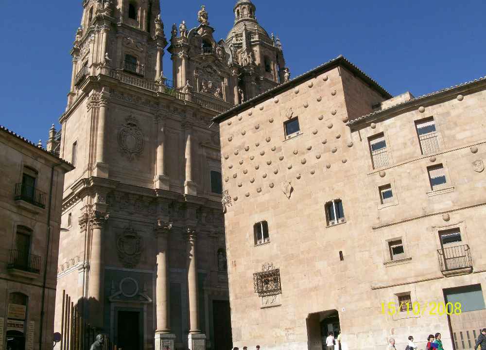| Casa das Conchas, um dos edíficios emblemáticos de Salamanca. Exemplar único de arquitetura civil da época dos Reis Católicos, foi mandada construir por Rodrigo Arias Maldonado por ocasião das suas bodas com María de Pimentel ou, segundo outra interpretação, do casamento de seu filho com Juana Pimentel. Autor desconhecido. Conjuga elementos mouriscos, góticos e renascentistas. As cerca de 400 conchas da fachada supõe-se serem uma referência ao brasão da família Pimentel. ou, menos provavelmente, ao culto a Santiago, de que são símbolo tradicional. |